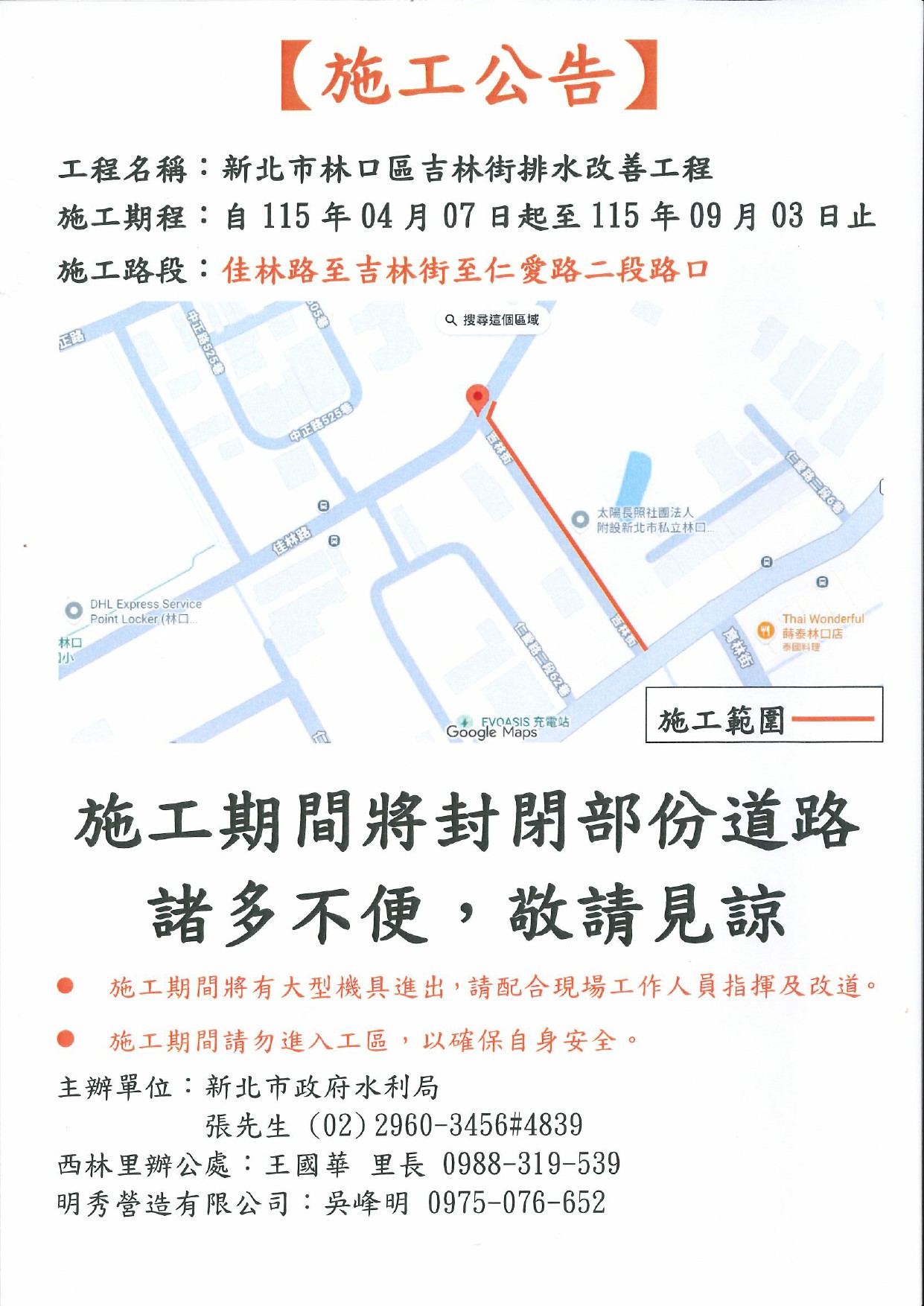 有關「國道1號林口交流道改善工程」預定完工日期由原116年1月6日調整為116年10月30日。