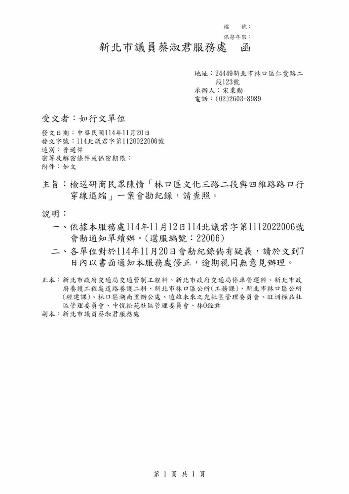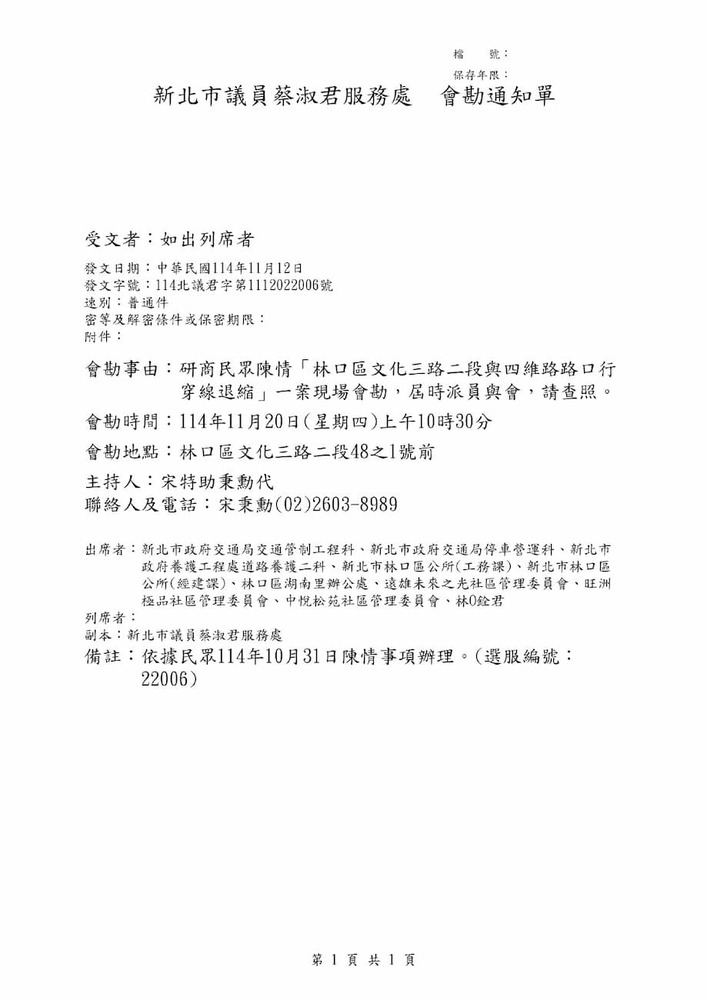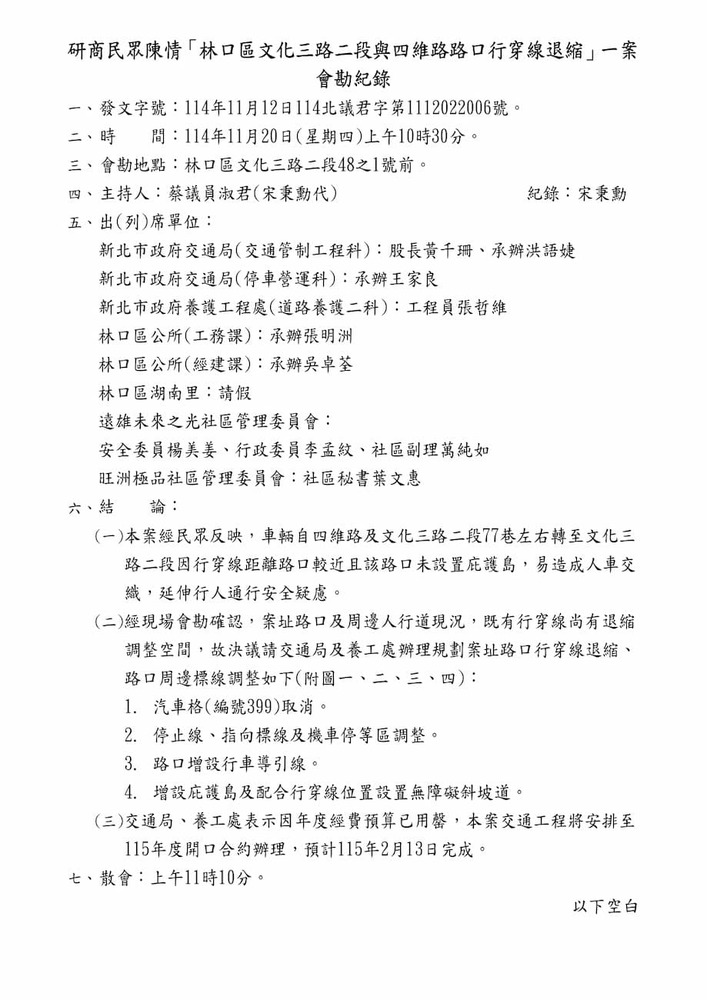 研商民眾陳情「林口區文化三路二段與四維路路口行穿線退縮」一案現場會勘(22006)