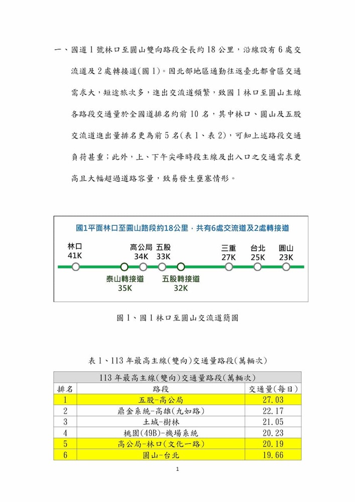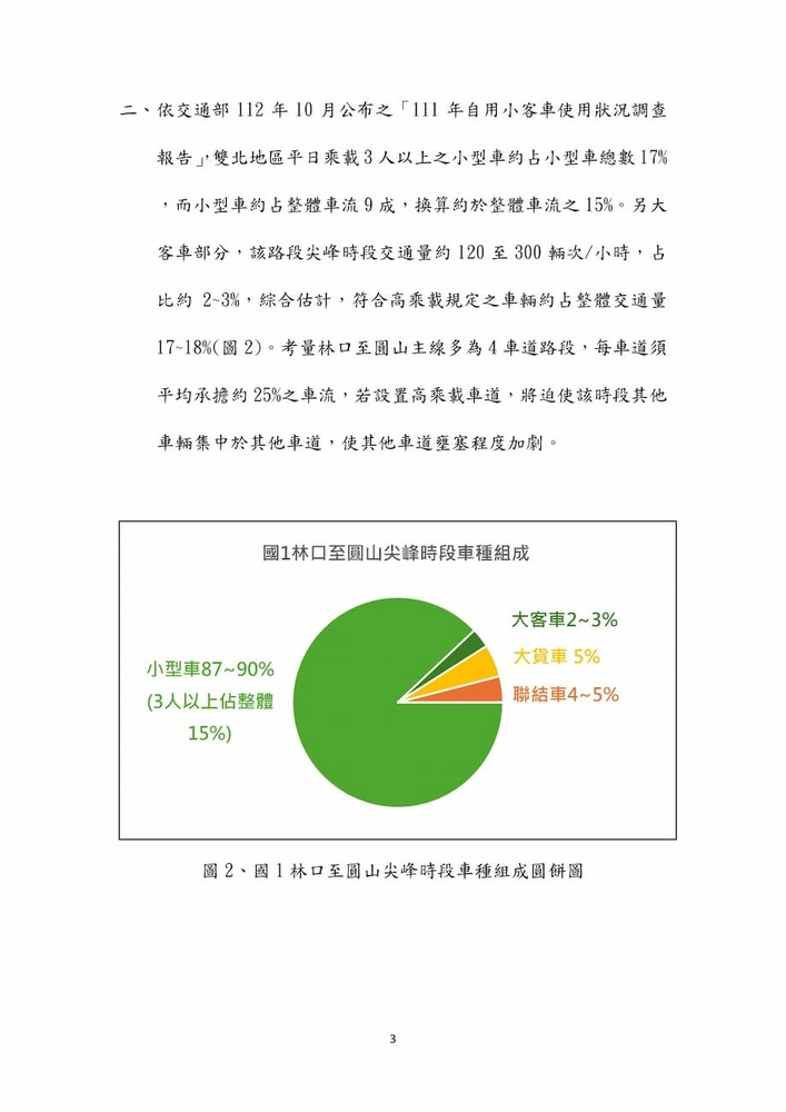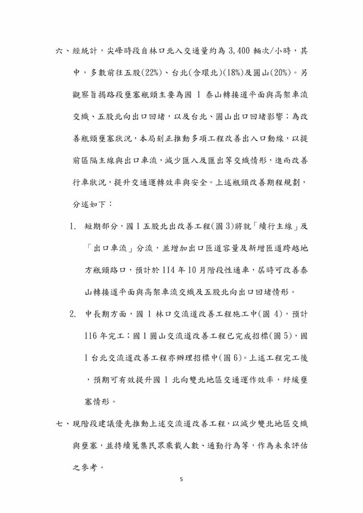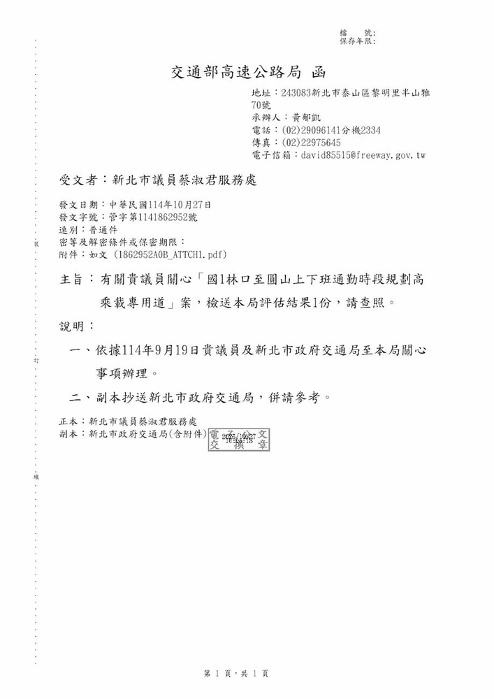 有關貴議員關心「國1林口至圓山上下班通勤時段規劃高乘載專用道」案。(22650)結案