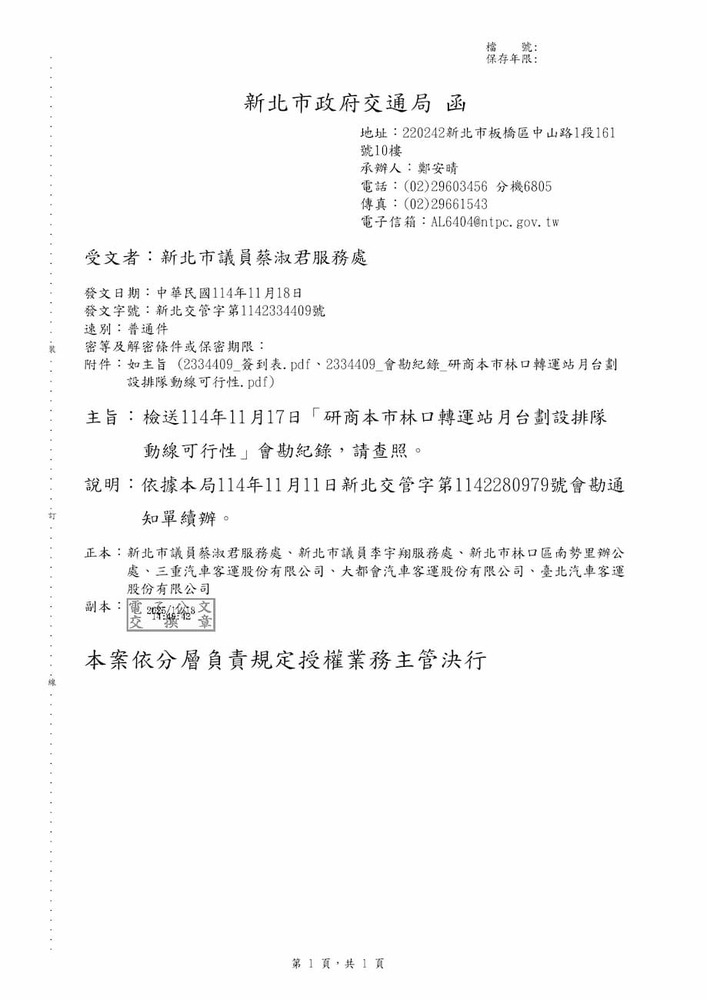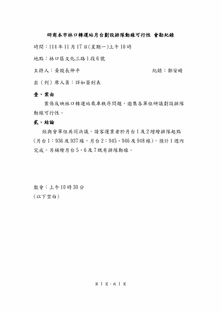 研商本市林口轉運站月台劃設排隊動線可行性。(22664)結案