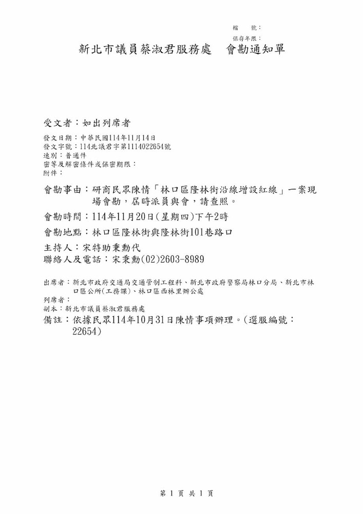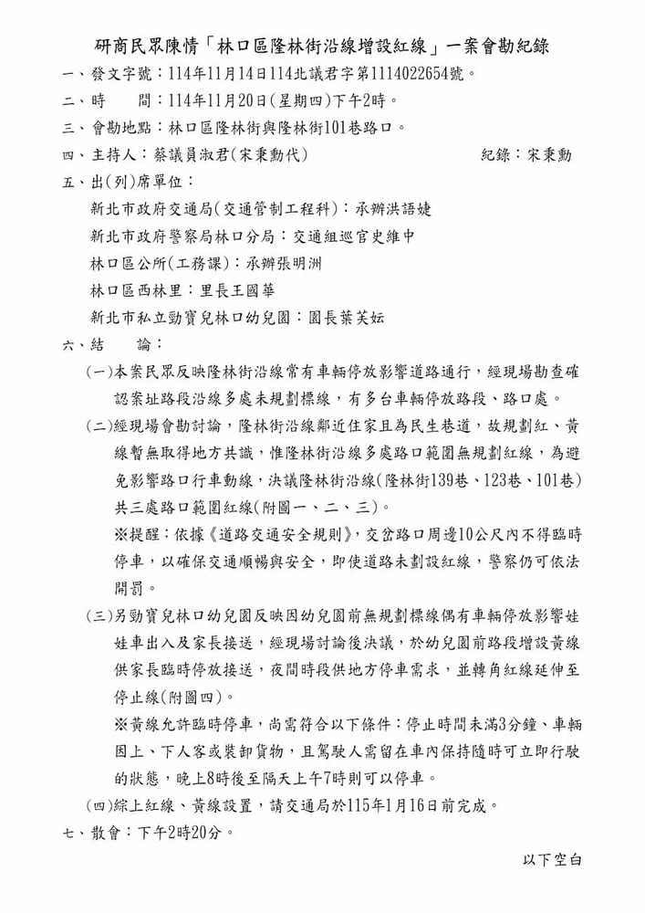 研商民眾陳情「林口區隆林街沿線增設紅線」一案現場會勘。(22654)