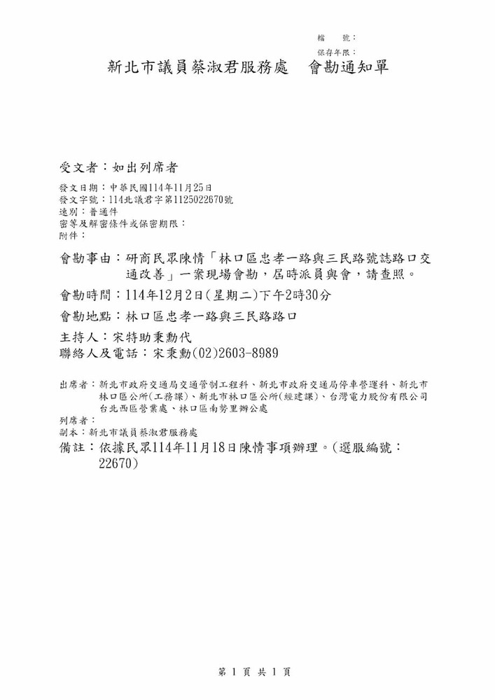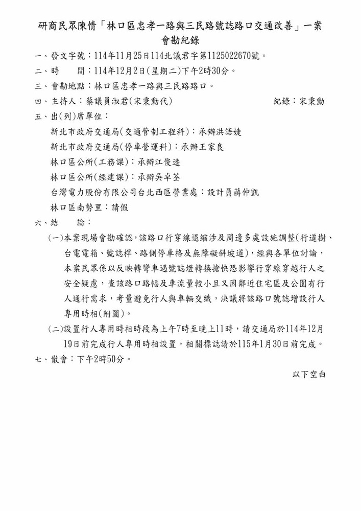 研商民眾陳情「林口區忠孝一路與三民路號誌路口交通改善」一案現場會勘。(22670)