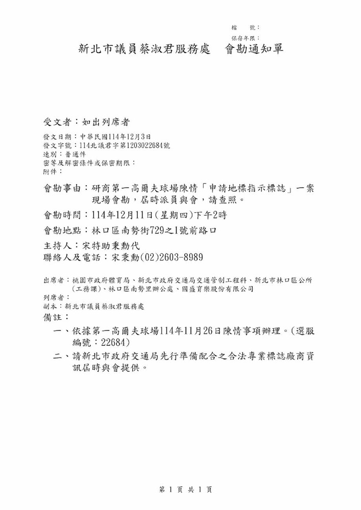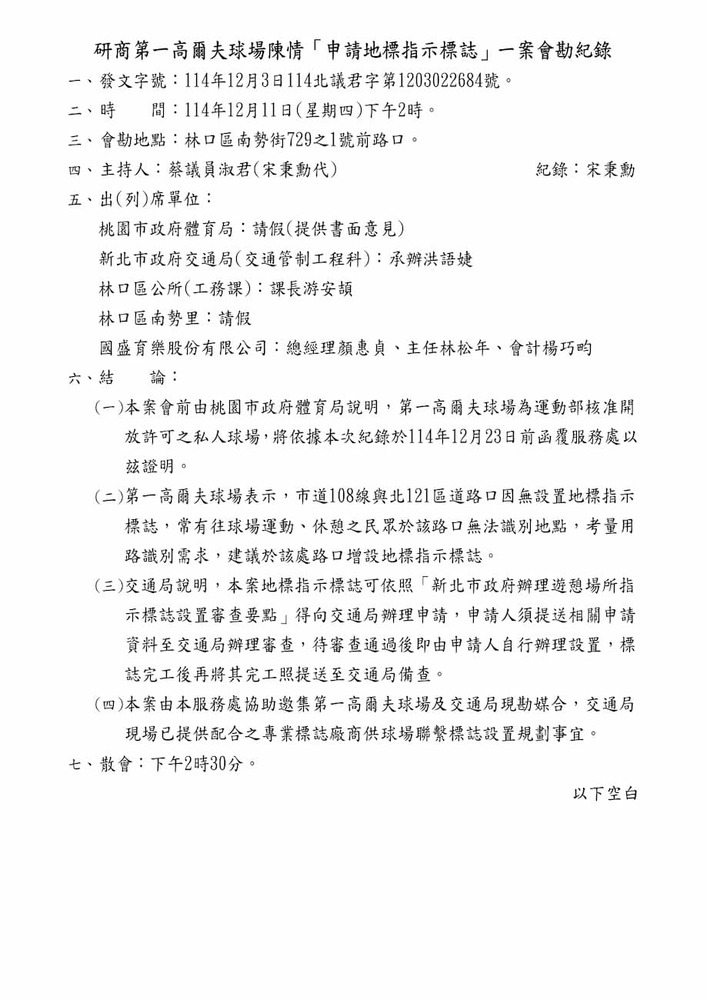 研商第一高爾夫球場陳情「申請地標指示標誌」一案現場會勘。(22684)