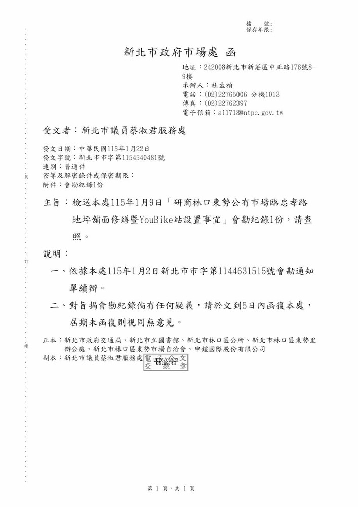 研商民眾陳情「林口區忠孝路36號及忠孝路646巷周邊增設YouBike站」一案現場會勘。(22711)