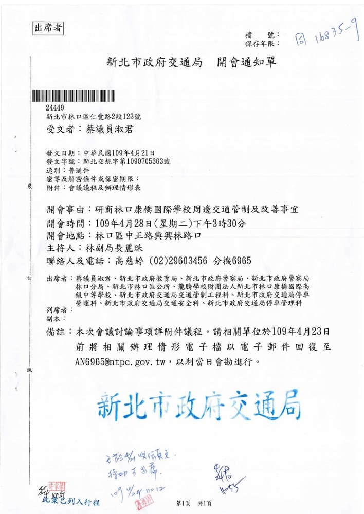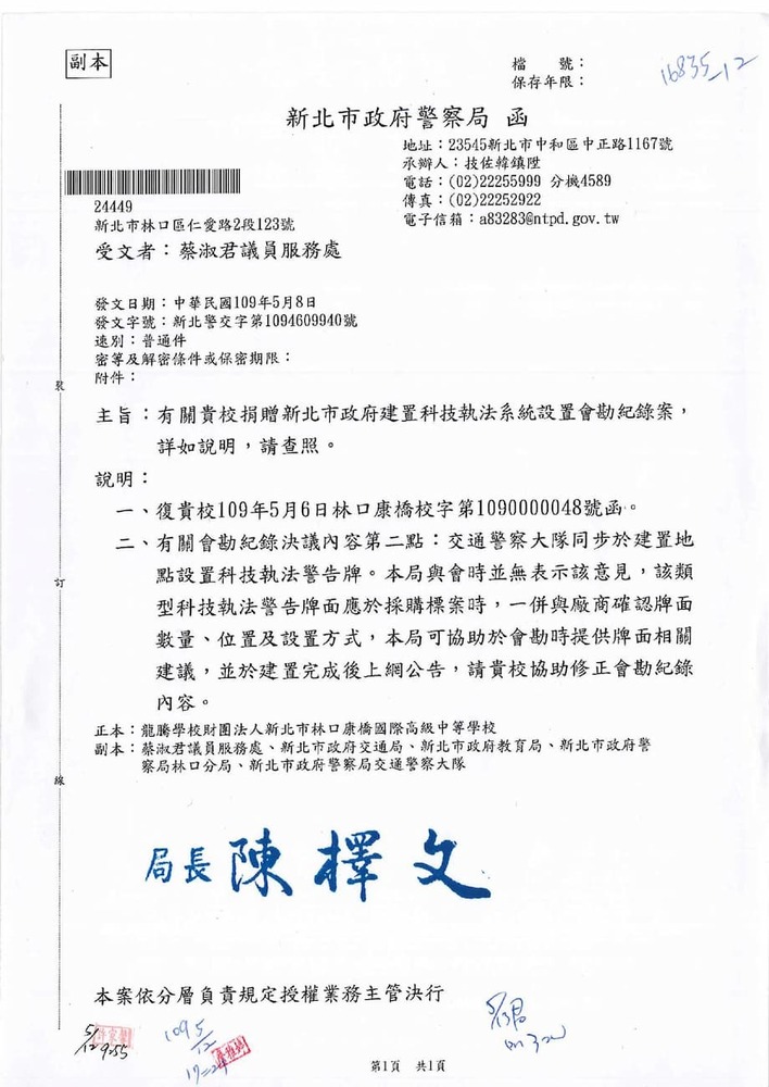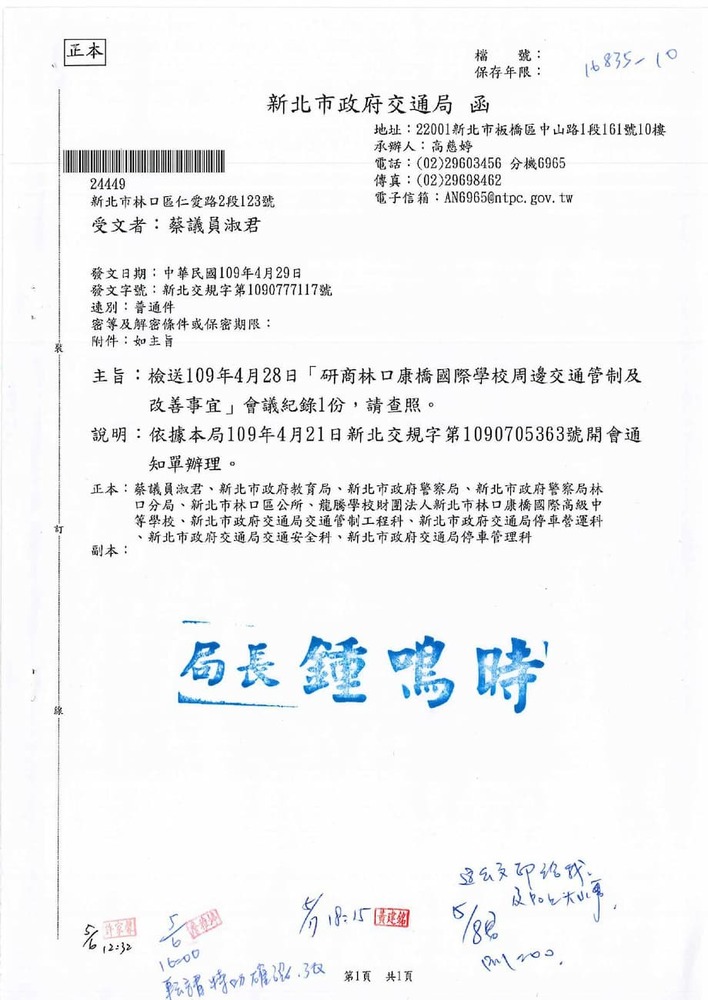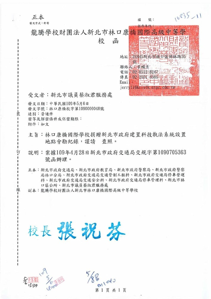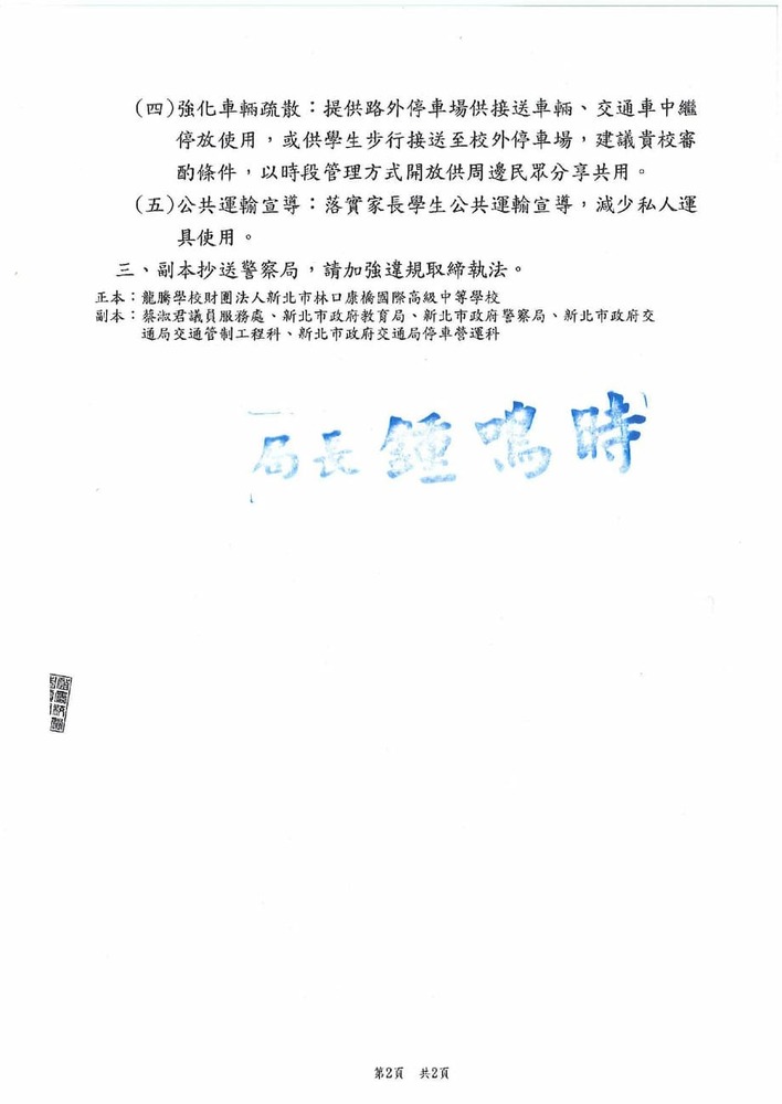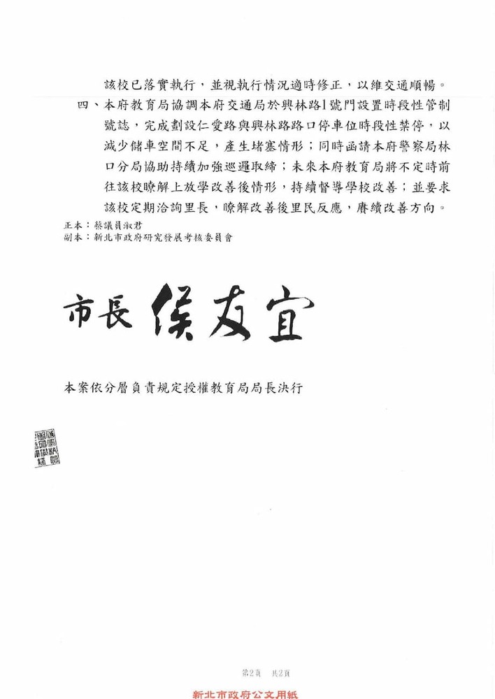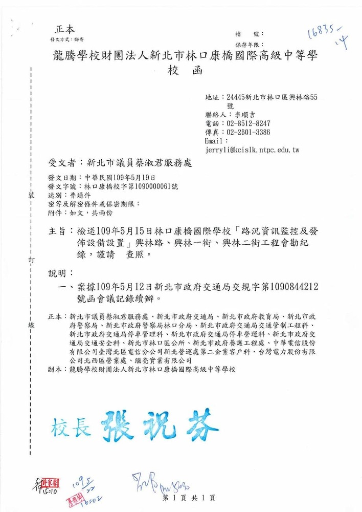 有關貴席關切林口區康橋國際學校週邊交通狀況,本分局相關執法作為,辦理情形。(16835)結案