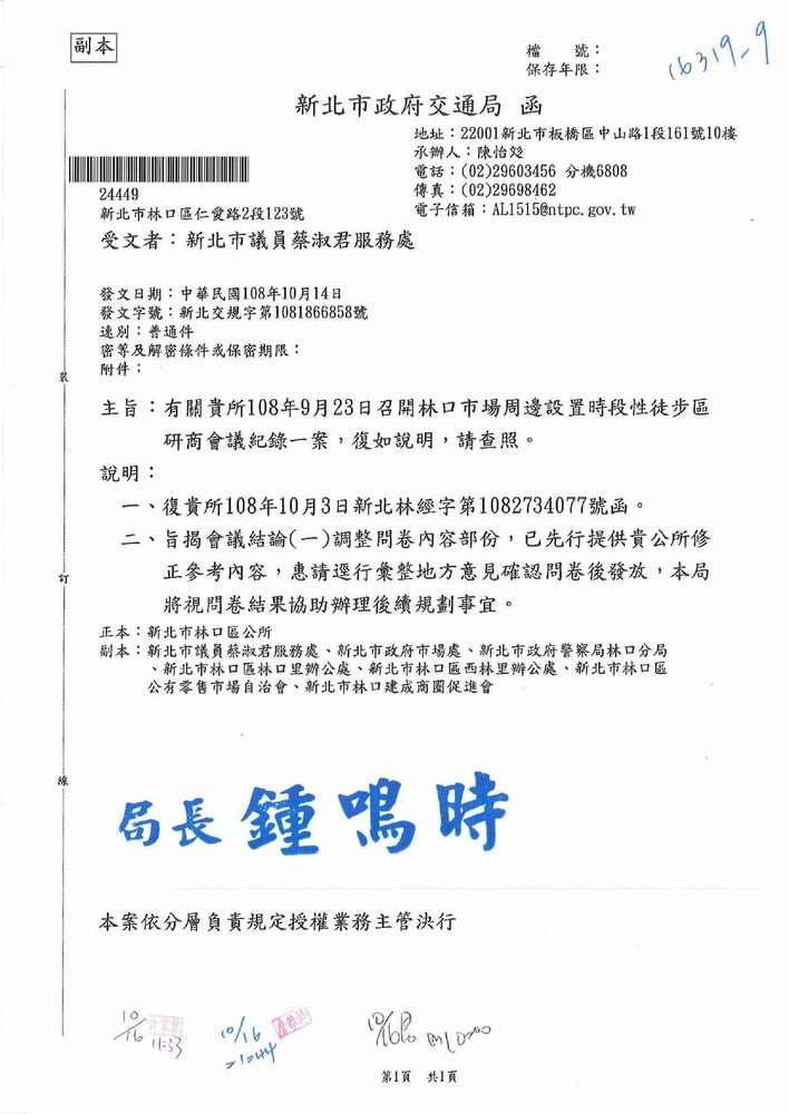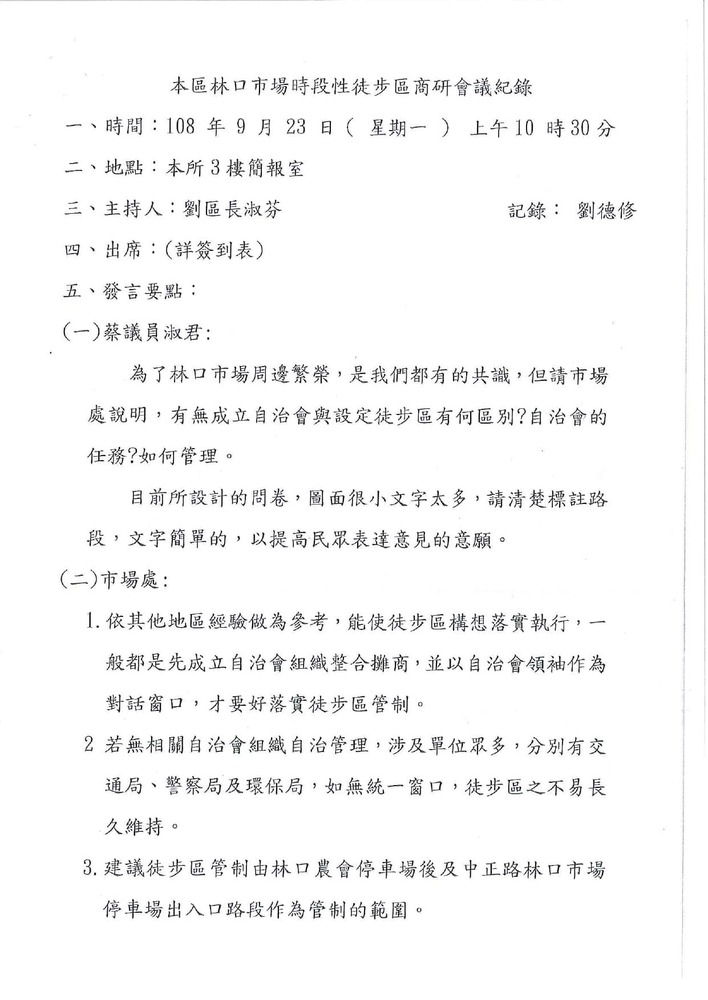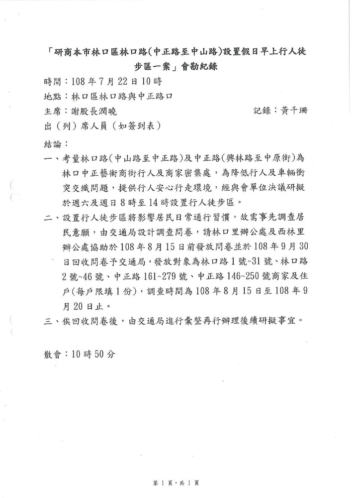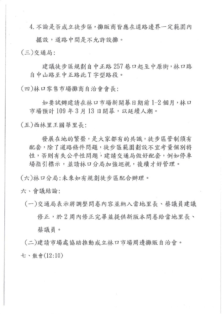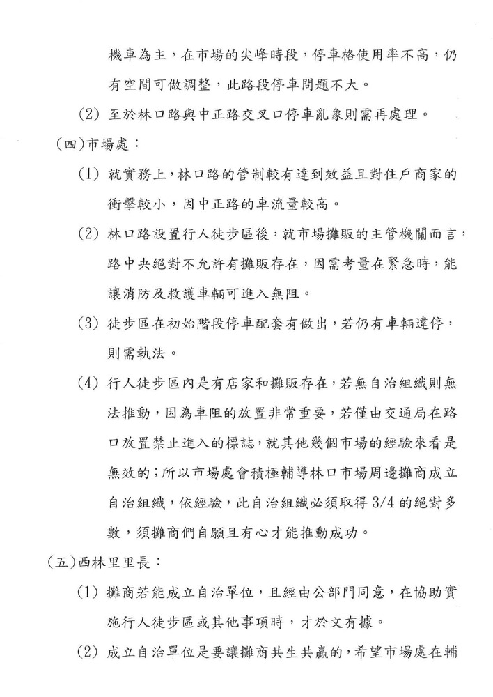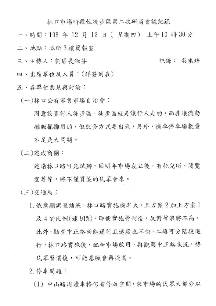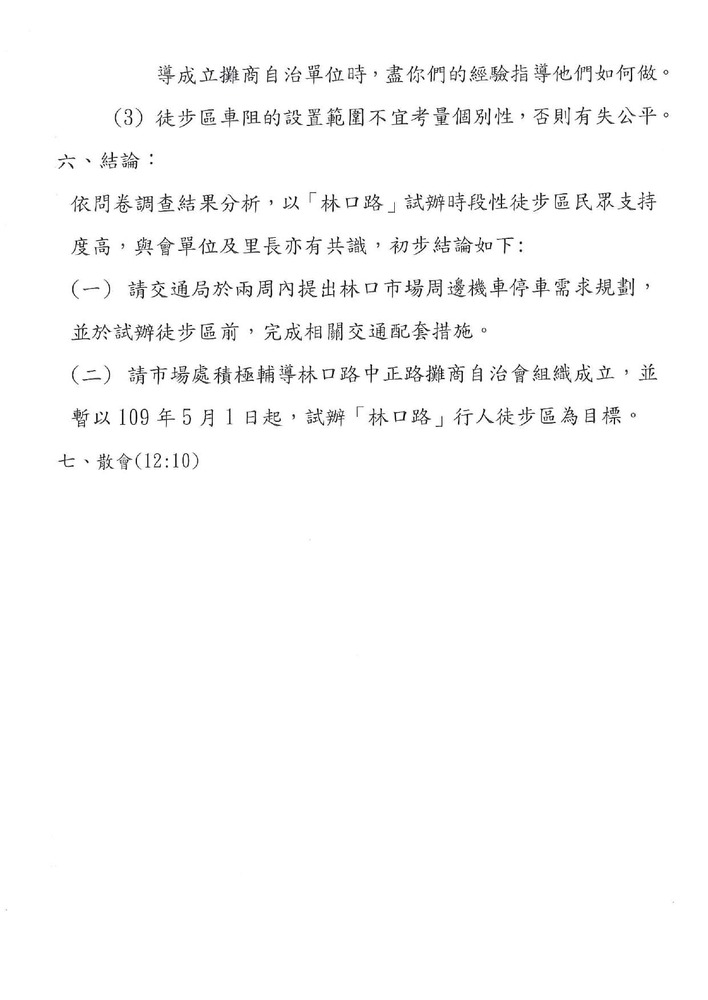 研商本市林口區林口路(中正路至中山路)設置假日早上行人徒步區一案。(16319)結案