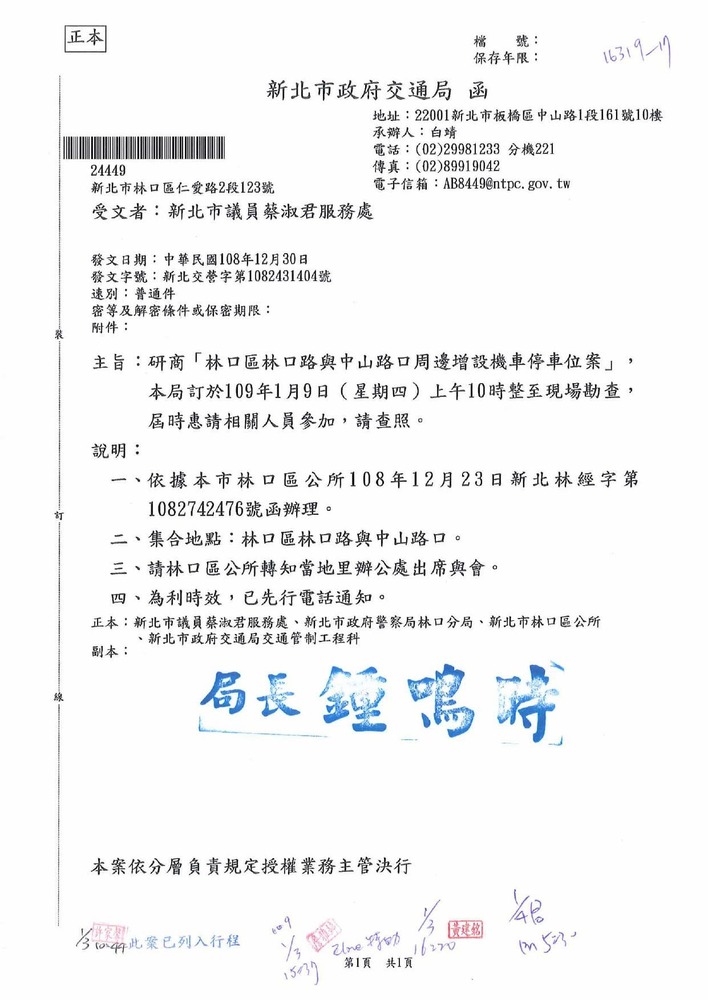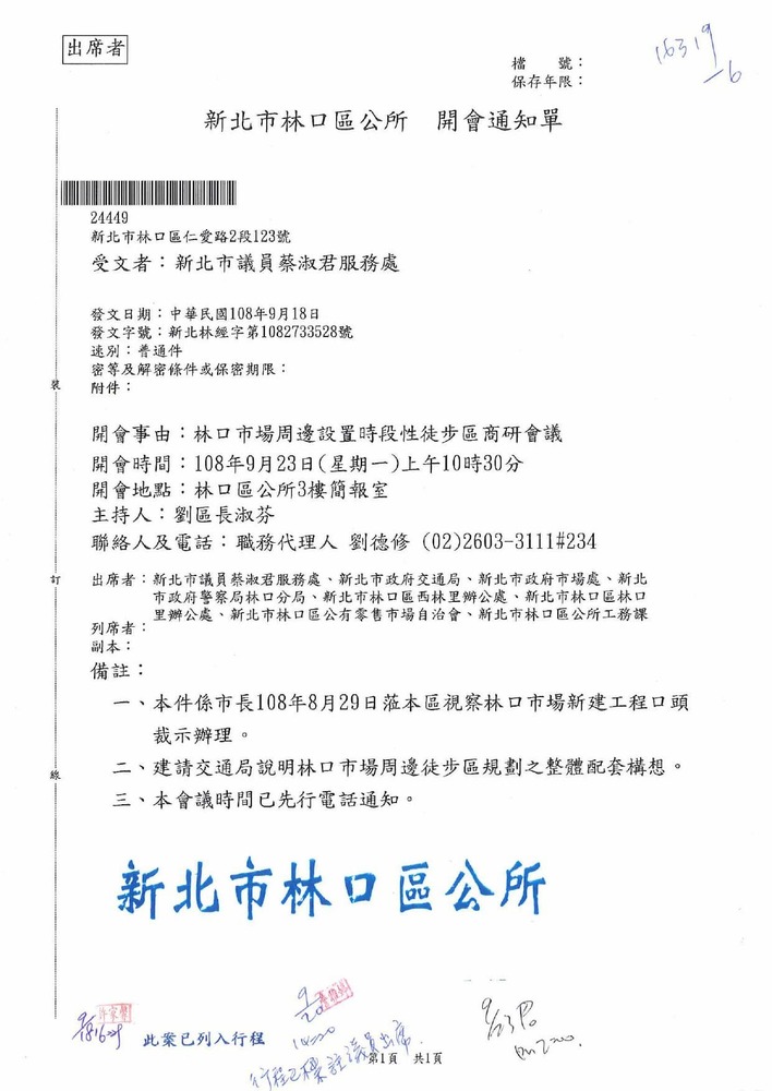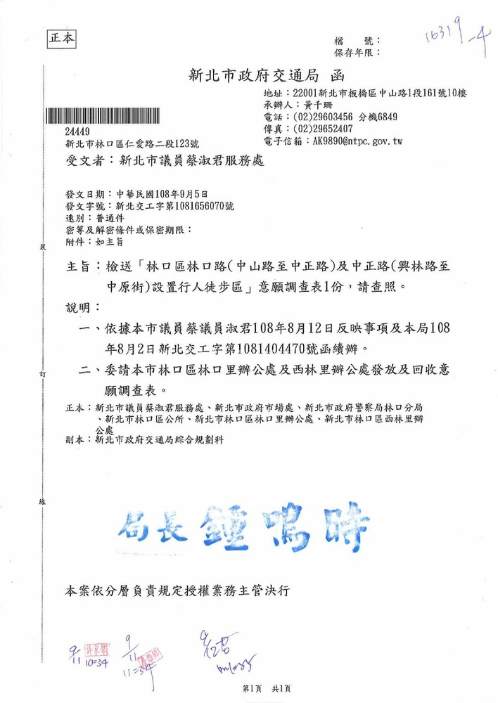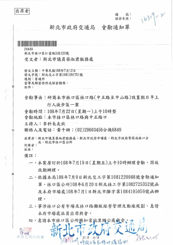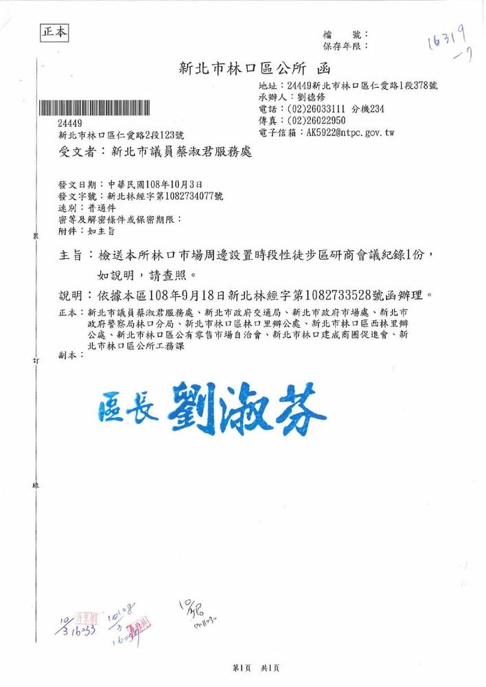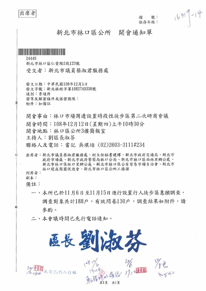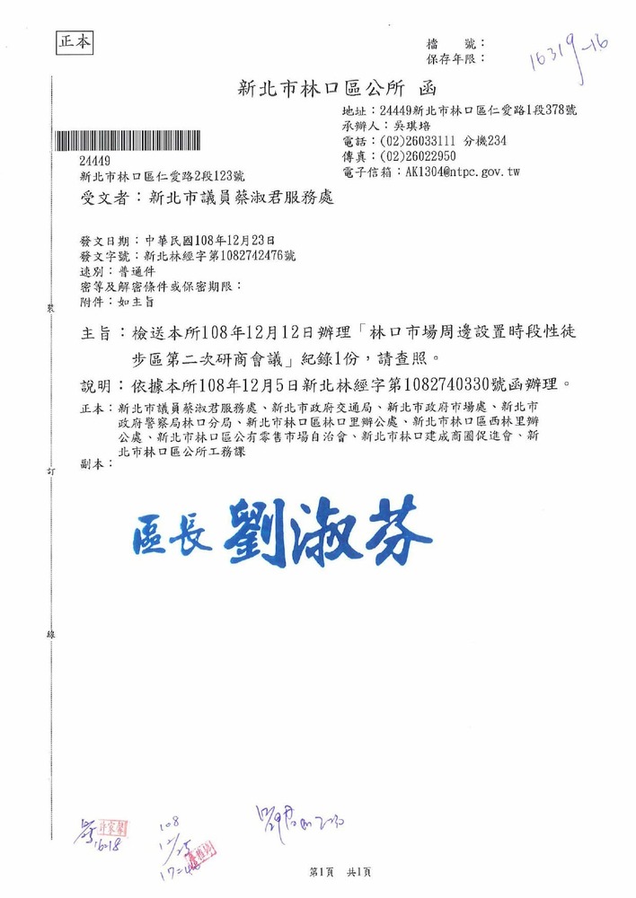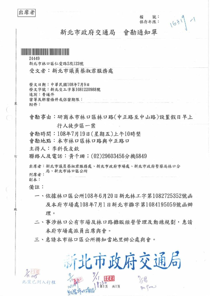 研商本市林口區林口路(中正路至中山路)設置假日早上行人徒步區一案。(16319)結案