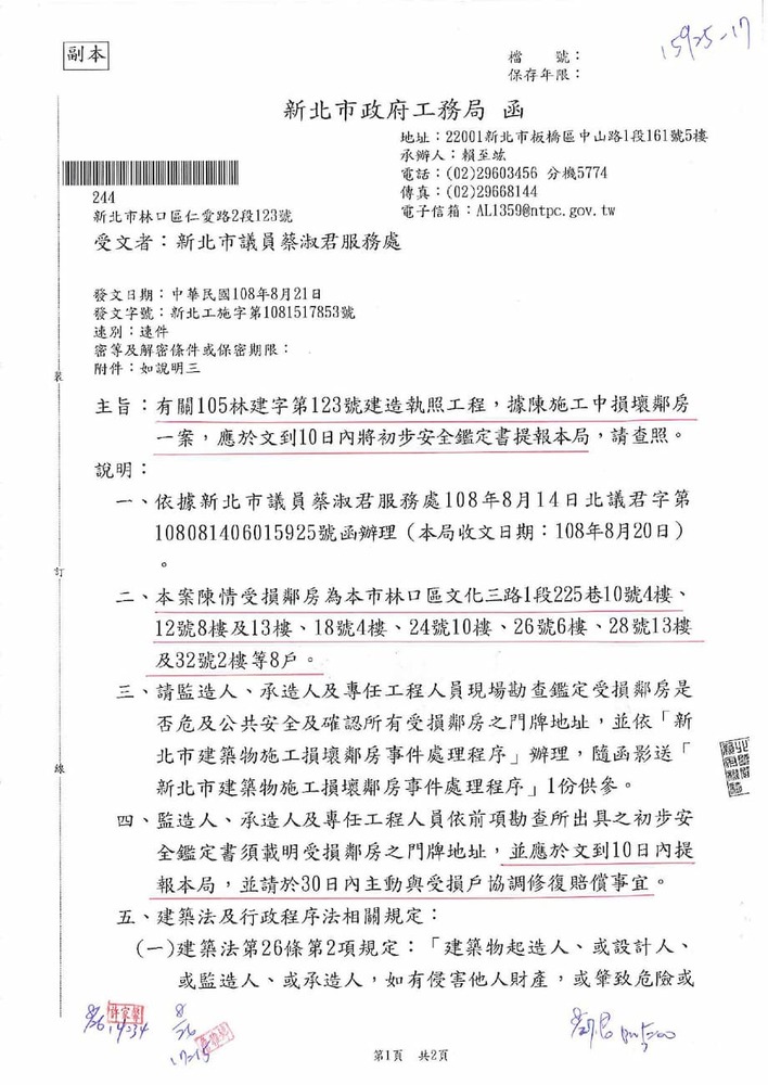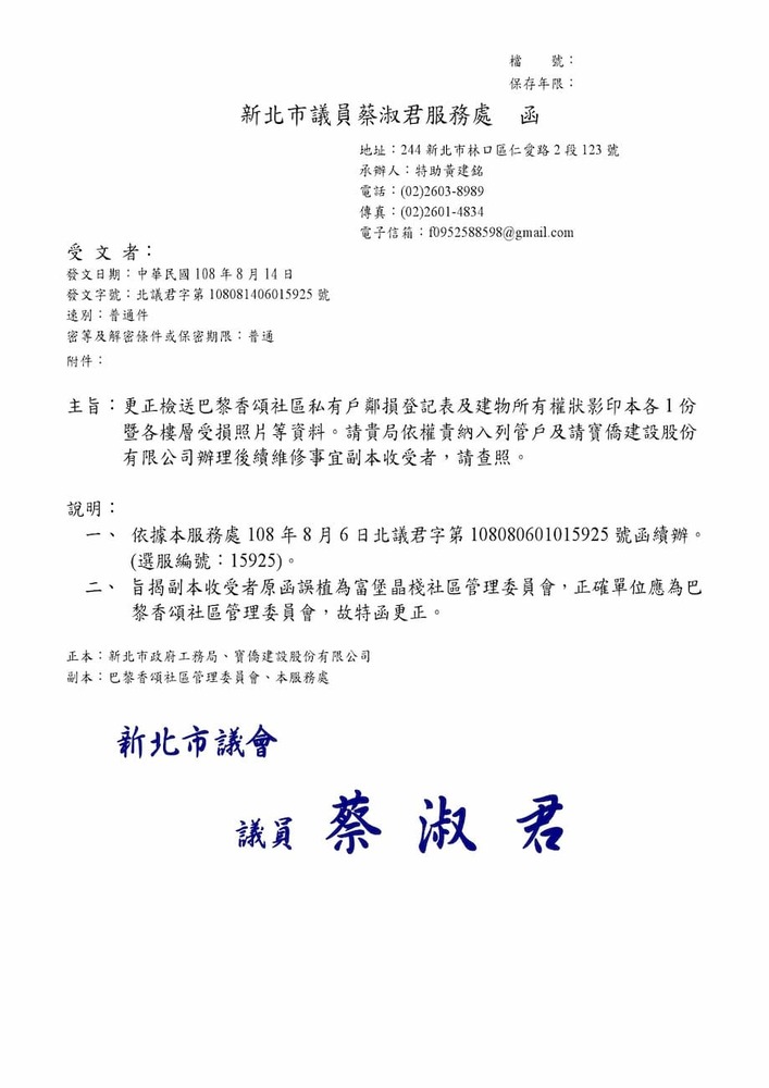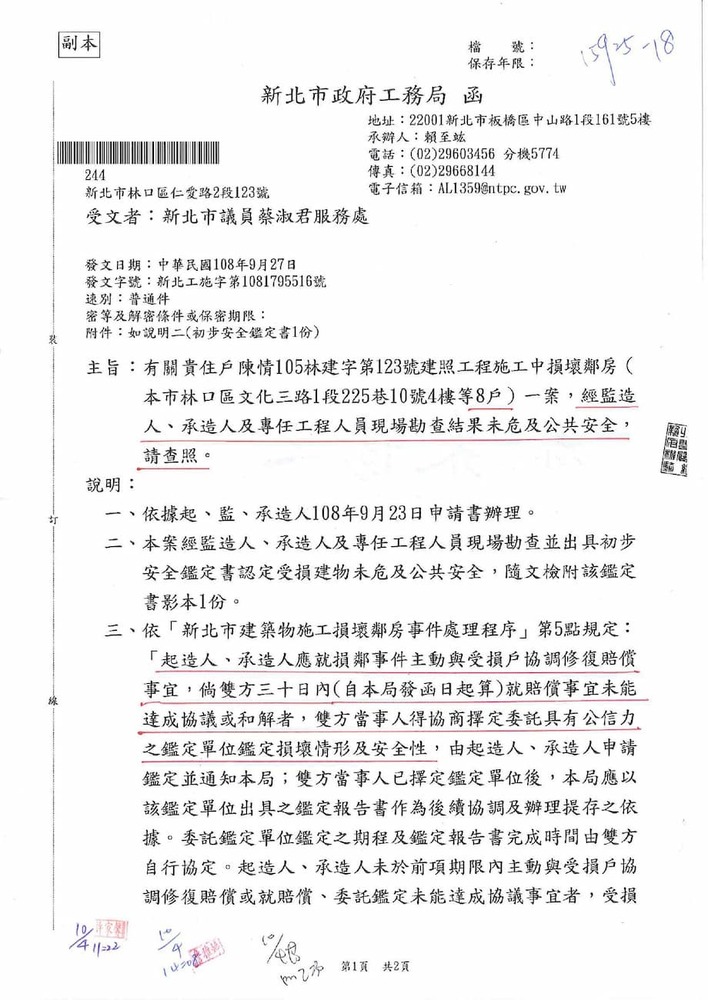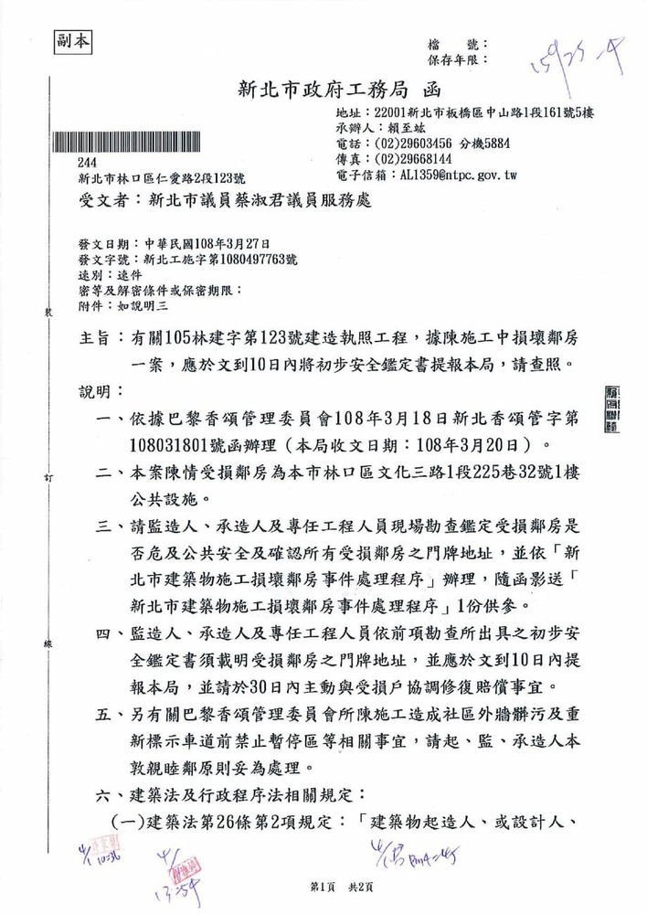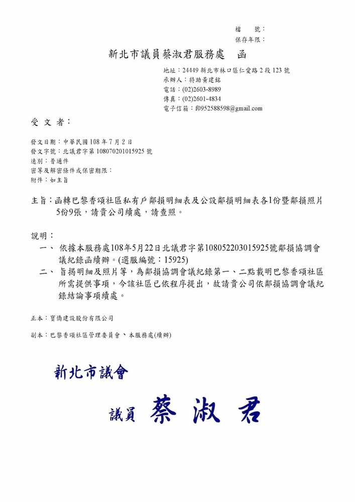 研商林口區巴黎香頌社區管理委員會陳情「鄰損協調會議」。(15925)結案