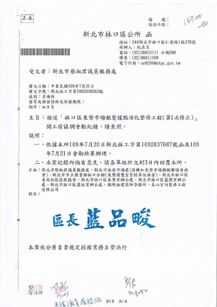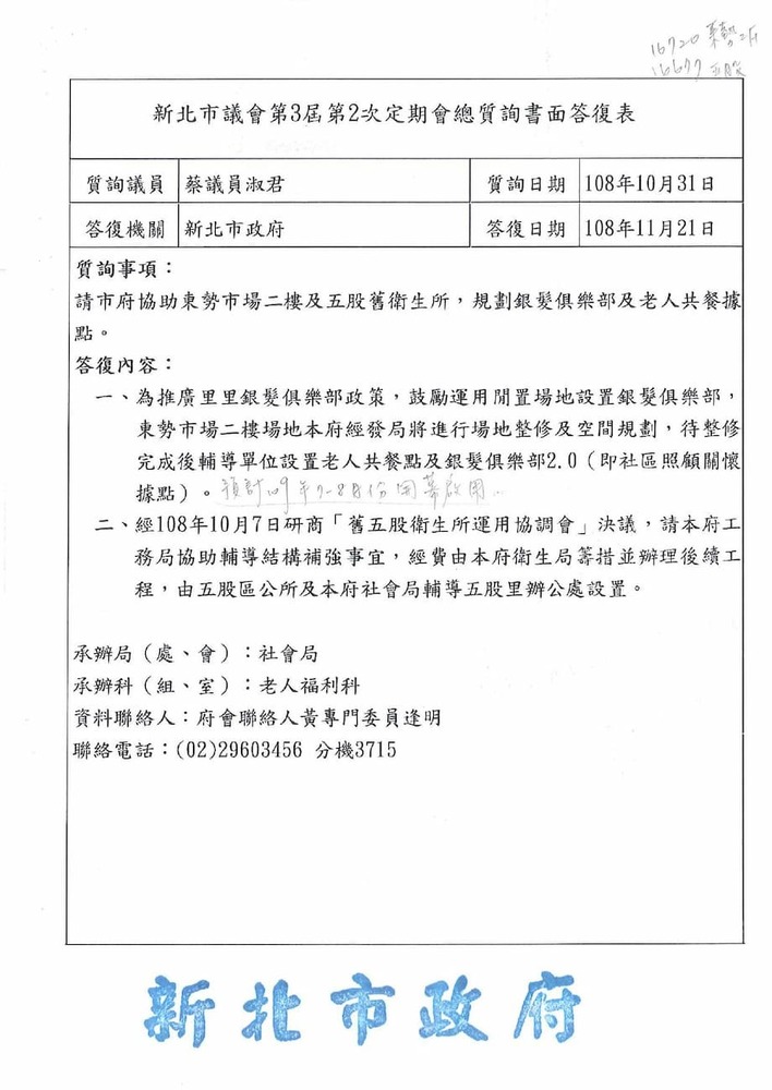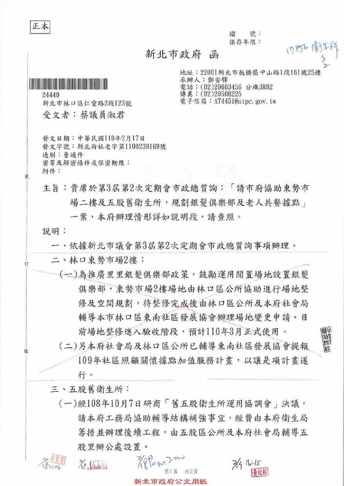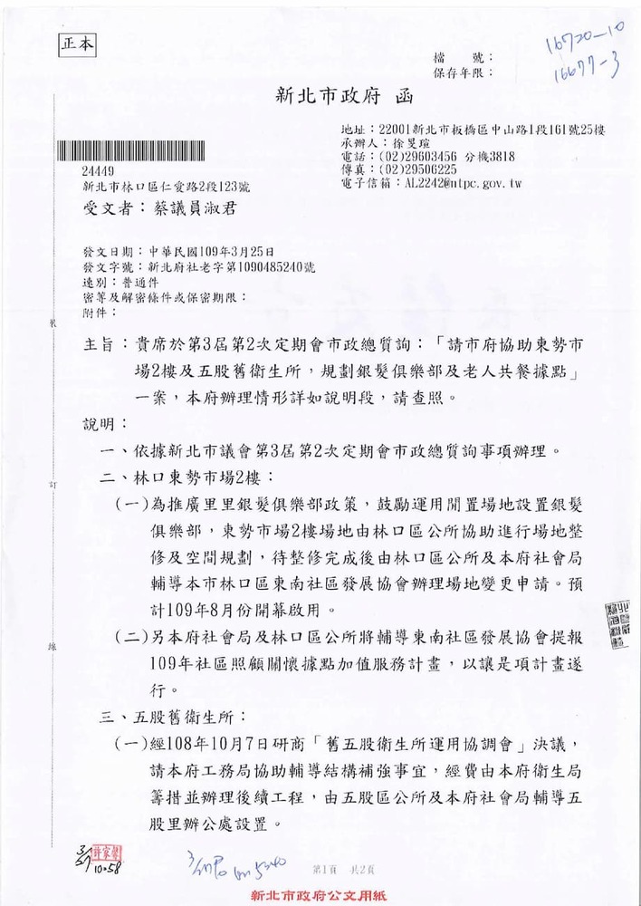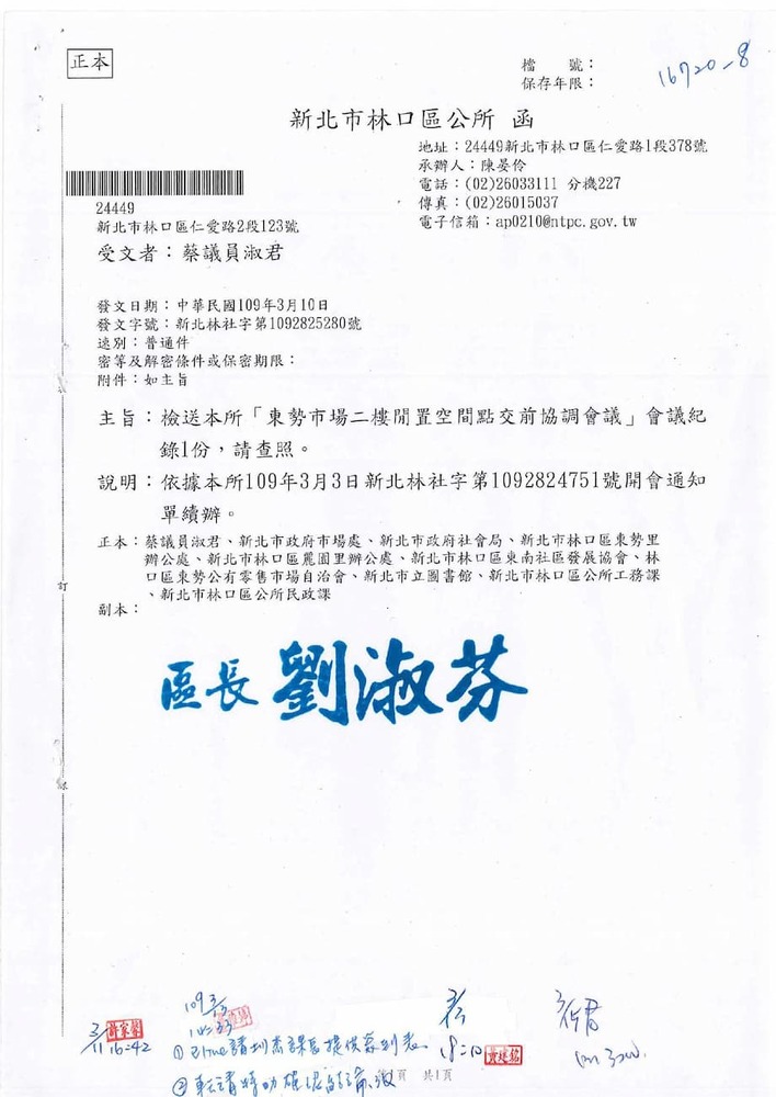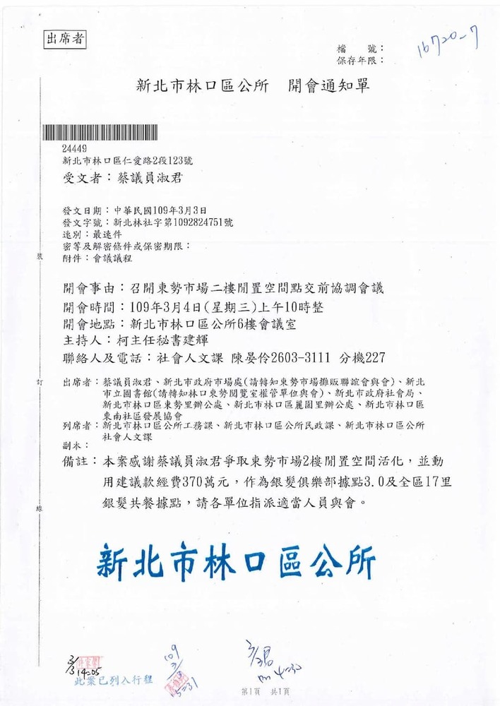 研商「林口區東勢公有零售市場2樓部份空間使用事宜」協調會議紀錄。(16720)結案