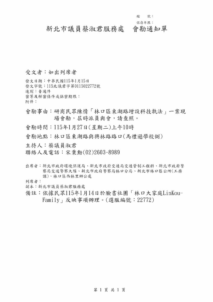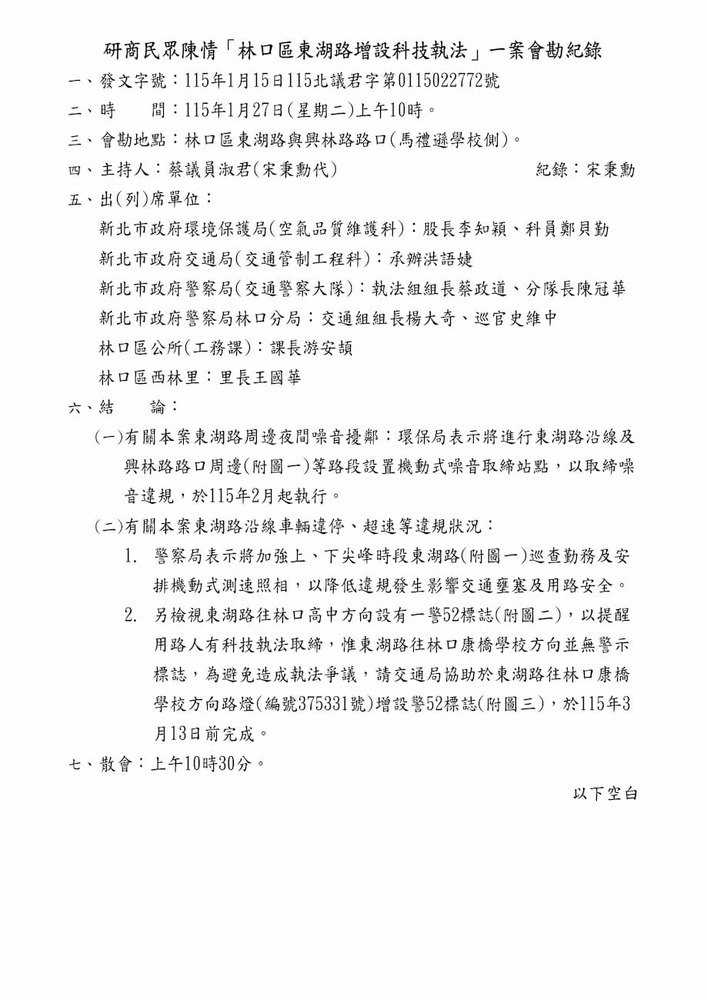 研商民眾陳情「林口區東湖路增設科技執法」一案現場會勘。(22772)