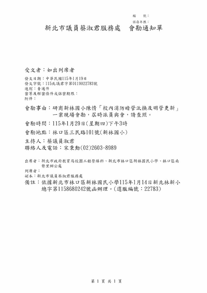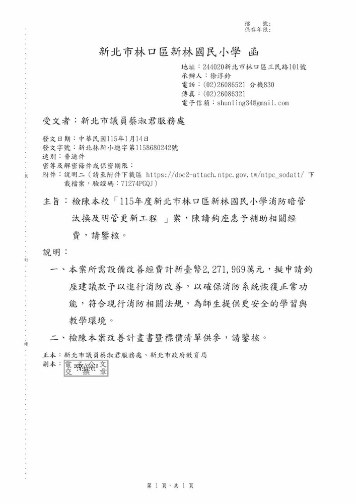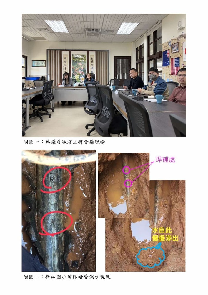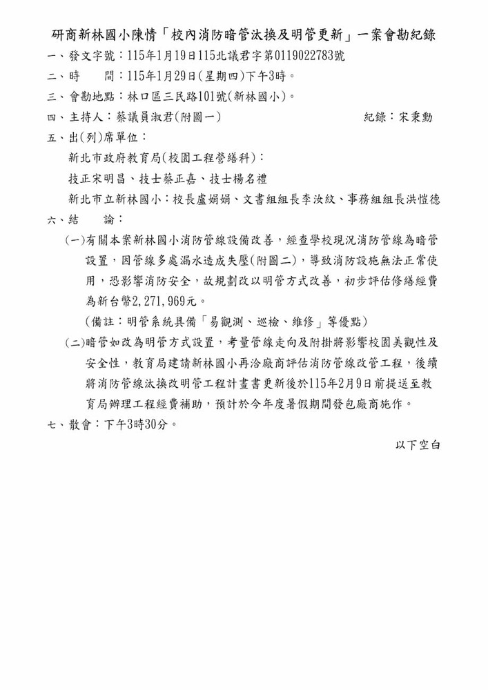 研商新林國小陳情「校內消防暗管汰換及明管更新」一案現場會勘。(22783)