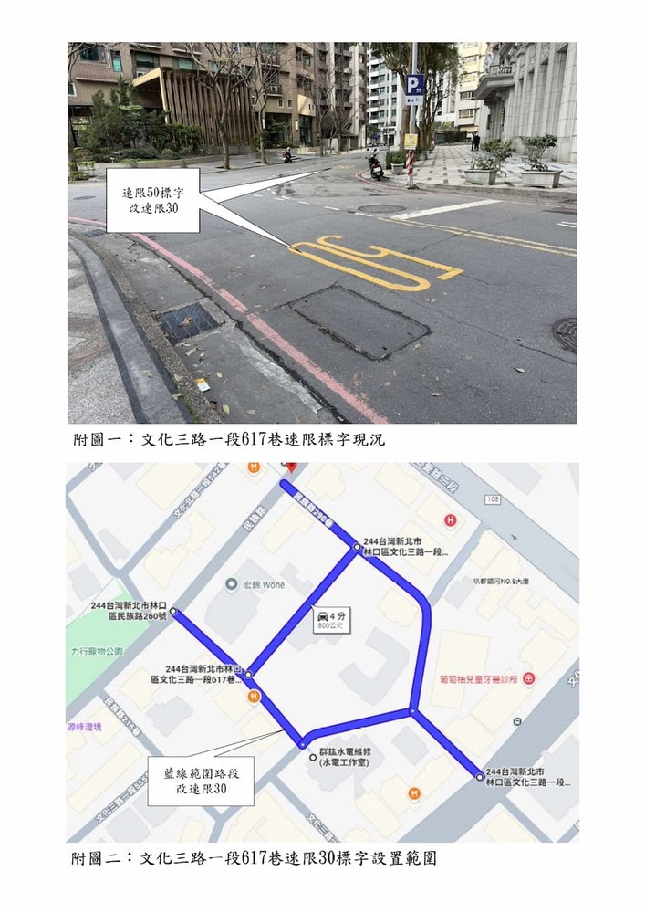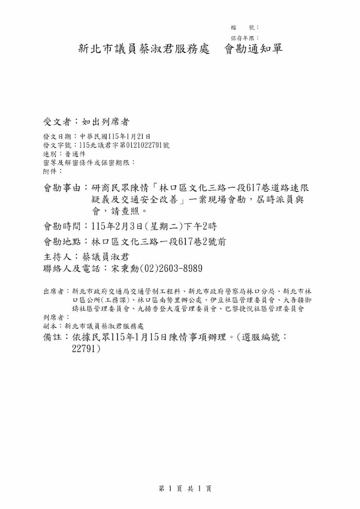 研商民眾陳情「林口區文化三路一段617巷道路速限疑義及交通安全改善」一案現場會勘。(22791)