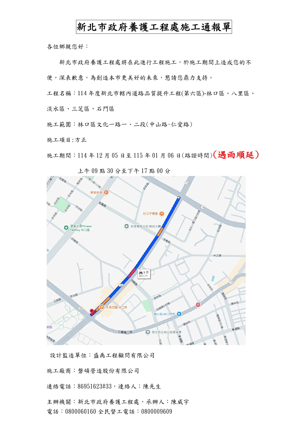 【資訊】新北市警察局-林口區固定式闖紅燈及測速照相地點